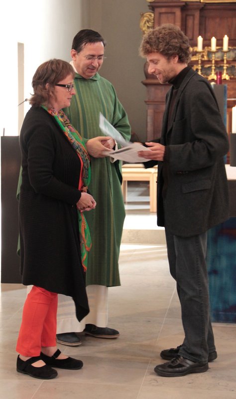 Im Anschluss an den Erntedankgottesdienst am 5. Oktober 2014 wurde das Experiment "Stoppt die Papierflut" in den Kreis der teilnehmenden Initiativen aufgenommen. Das Experiment hat Beispielcharakter, weil es zeigt, wie eine Pfarreiengemeinschaft mit einfachen Schritten Ressourcen schonen kann und damit Bewusstsein für einen verantwortungsvollen Umgang mit den Gütern unserer Erde schafft. Stellvertretend für die Pfarreiengemeinschaft nahmen die Vorsitzende des Pfarrgemeinderates Gabriele Witt-Eßwein und Pfarrer Martin Tiator die Teilnehmerurkunde von Christoph Fuhrbach aus dem Kampagnen-Team entgegen.
