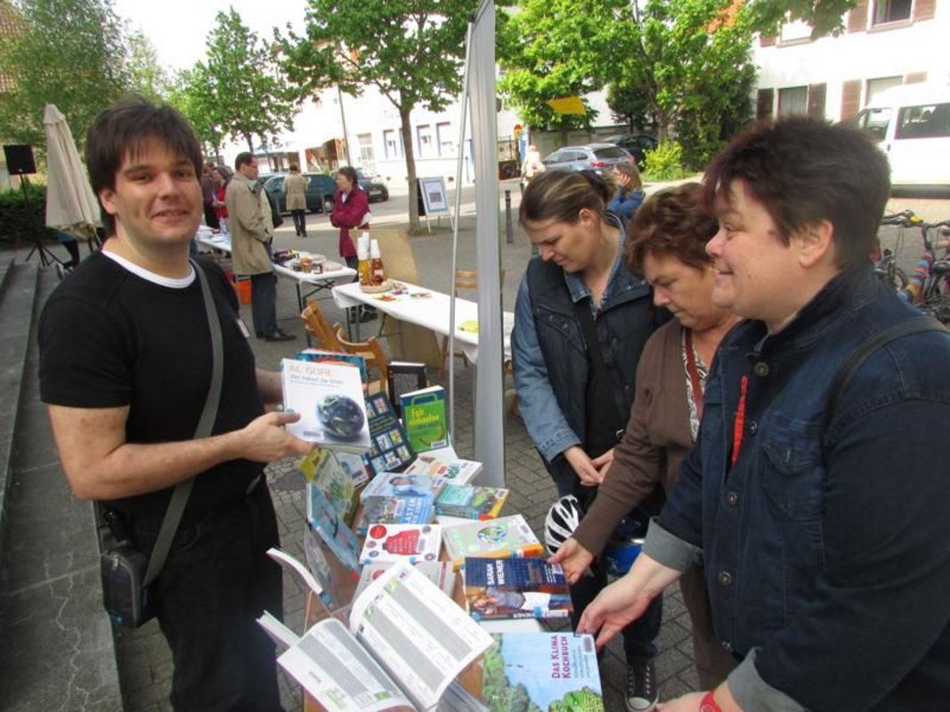 Das Medienpaket mit über 25 Büchern wurde zum Start der Bistumsrumrundung der Kampagne vorgestellt und begleitete das Kampagnen-Team auf der dreitägigen Tour. An den zwölf Haltepunkten lud die Ausstellung ein, in Büchern zum Thema Nachhaltigkeit und Lebensstil zu schmökern.
